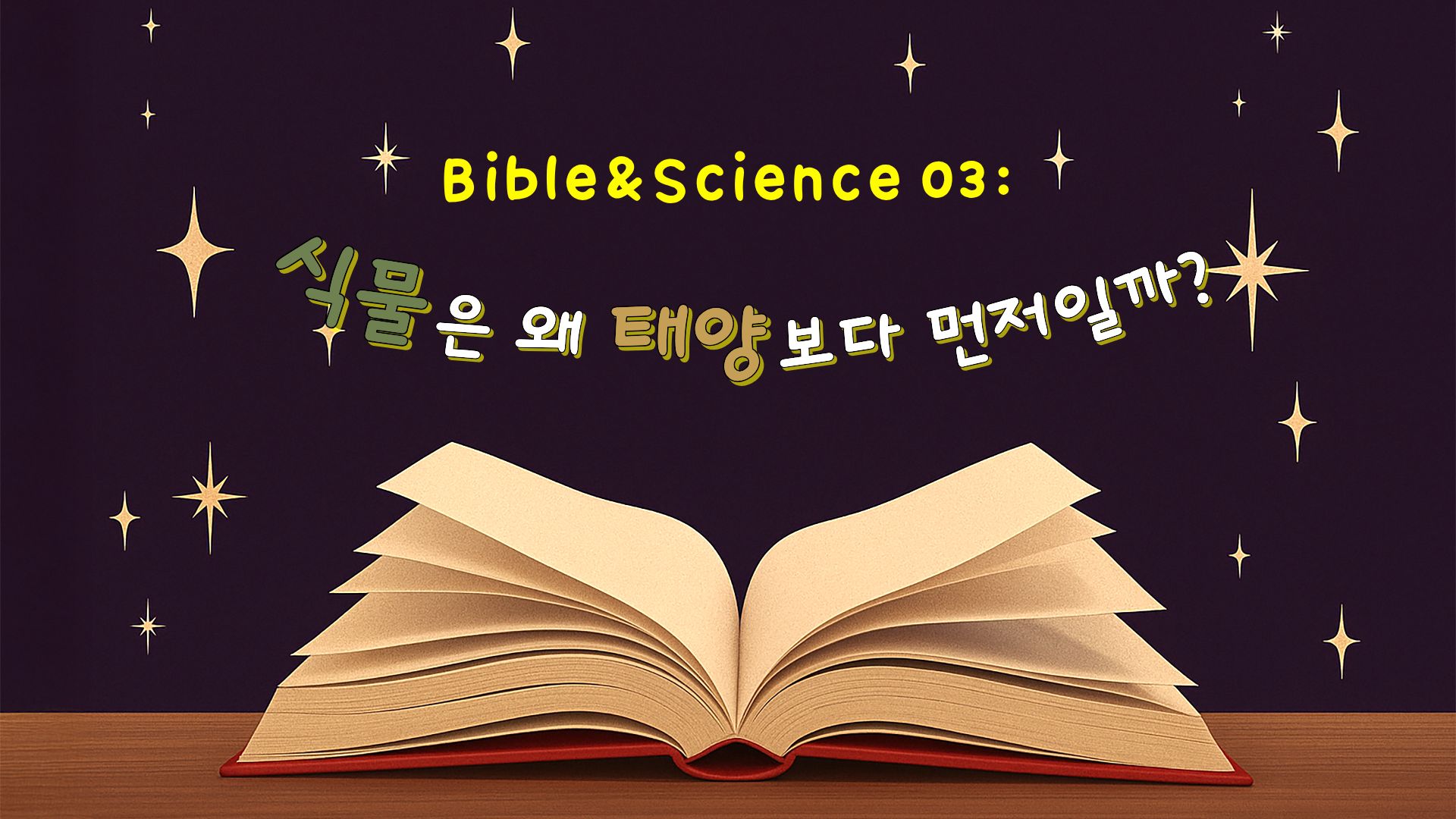 창세기 첫째 날에 빛이 등장한 뒤,태양과 별은 넷째 날에야 등장한다.이 순서는 많은 사람에게 이렇게 느껴진다.“말이 안 되는데?”빛이 있으려면 태양이 있어야 하고,태양이 있어야 낮과 밤이
